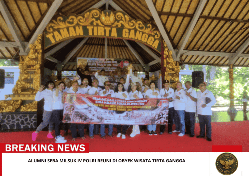 Beritaintelijennegara. id |Amlapura, Minggu 19 April 2026 — Untuk mewujudkan tetap terjalinnya tali silaturrahmi sesana angkatan Sekolah Bintara Militer Sukarela Polri IV tahun 1985/1986 , para alumni Seba Milsuk IV Polri melakukan reuni di Obyek Wisata Tirta Gangga Karangasem – Bali. Reuni yang berlangsung dari menjelang siang hingga sore hari tersebut dilaksanakan di Wantilan obyek wisata Tirta Gangga pada hari Minggu tanggal 19 April 2026.