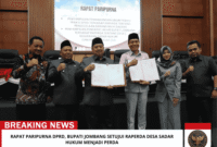 Beritaintelijennegara.id | JOMBANG – Pemerintah Kabupaten Jombang bersama Dewan Perwakilan Rakyat Daerah (DPRD) Kabupaten Jombang resmi menyepakati Rancangan Peraturan Daerah (Raperda) Inisiatif DPRD tentang…