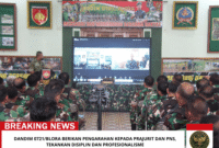 Beritaintelijennegara.id| Blora, 30 Januari 2026 – Komandan Kodim 0721/Blora Letkol Inf Agung Cahyono, S.Sos., M.Han., memberikan pengarahan kepada seluruh prajurit dan Pegawai Negeri Sipil…