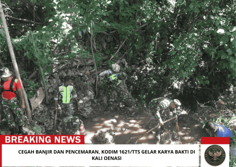 Kegiatan diawali dengan apel pengecekan yang dipimpin Kasdim 1621/TTS, kemudian dilanjutkan dengan kerja bakti membersihkan sampah yang menumpuk di sepanjang aliran Kali Oenasi dan sekitarnya. Pembersihan ini bertujuan mengurangi dampak pencemaran lingkungan sekaligus mencegah potensi banjir akibat tersumbatnya aliran air.