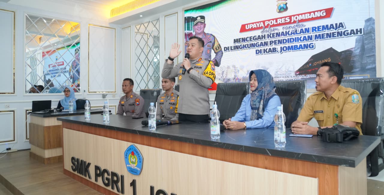 Beritaintelijennegara.id | Jombang — Kapolres Jombang AKBP Ardi Kurniawan, S.H., S.I.K., CPHR memberikan arahan kepada pelajar SMK PGRI 1 Jombang terkait pencegahan kenakalan remaja di lingkungan sekolah, pada Selasa (10/2/2026) pagi.