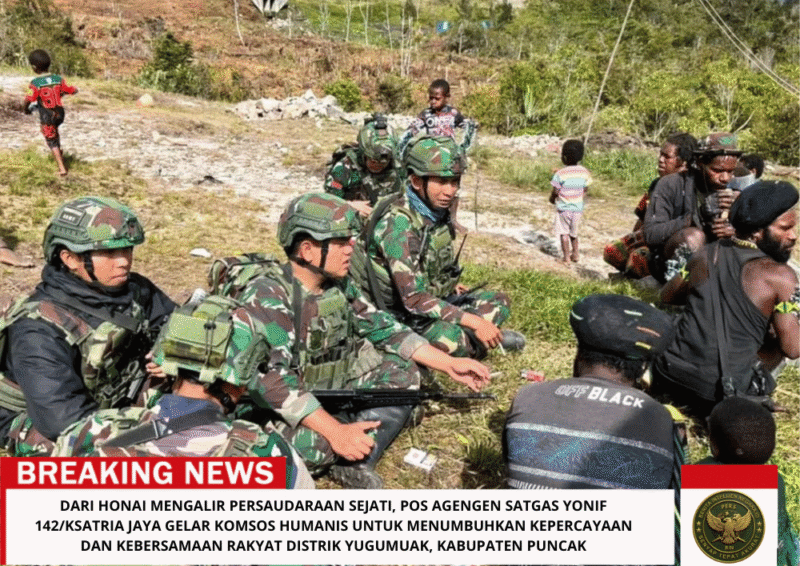 Beritaintelijennegara.id| Yugumuak, Papua — Di tengah sejuknya udara pegunungan dan hangatnya kebersamaan masyarakat, personel Pos Agengen Satgas Yonif 142/Ksatria Jaya melaksanakan kegiatan Komunikasi Sosial (Komsos) dengan mengunjungi honai-honai warga di Distrik Yugumuak, Kabupaten Puncak.