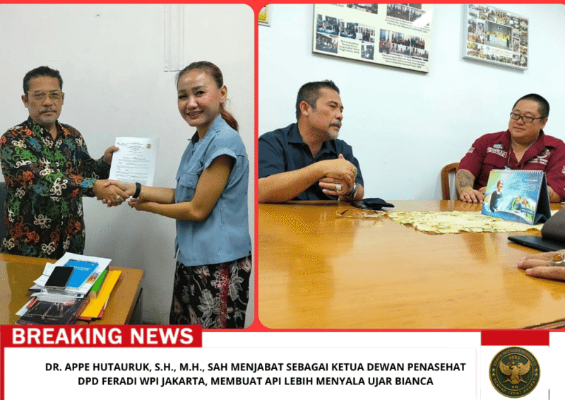 Dr. Appe Hutauruk, S.H., M.H., SAH Menjabat sebagai Ketua Dewan Penasehat DPD FERADI WPI JAKARTA, MEMBUAT API LEBIH MENYALA UJAR BIANCA