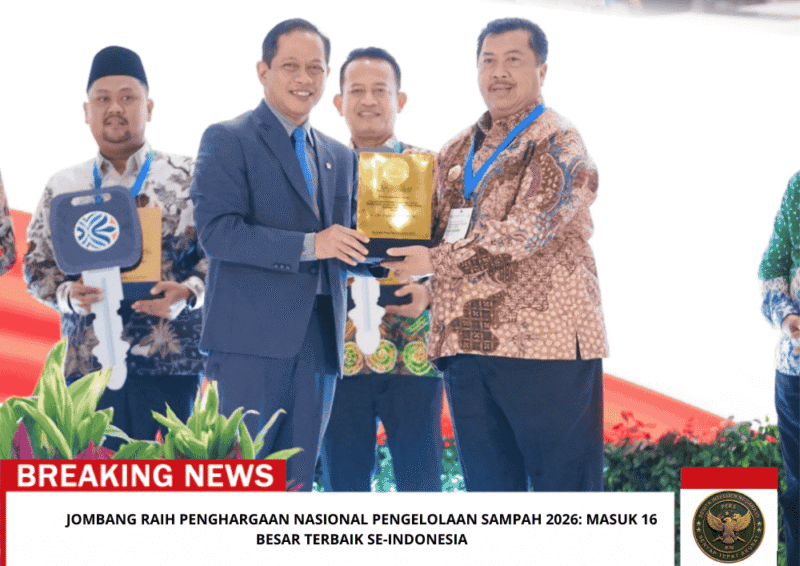 Beritaintelijennegara.id | JOMBANG – Kabupaten Jombang, Jawa Timur kembali menorehkan prestasi di kancah nasional. Pada Rabu, 25 Februari 2026, Kabupaten Jombang resmi menerima penghargaan kinerja pengelolaan sampah dari Menteri Lingkungan Hidup/Kepala Badan Pengendalian Lingkungan Hidup (BPLH) dalam acara yang digelar di Gedung Balai Kartini, Jakarta.