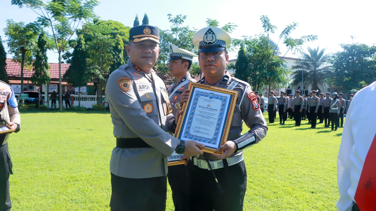 Penghargaan diberikan kepada personel Satlantas, yakni Aiptu Sukron dan Aipda Nauval Setiawan, yang berhasil mengamankan seorang pengendara roda dua yang kedapatan membawa 20 butir pil dobel L saat melaksanakan pengaturan arus lalu lintas di simpang tiga Lapas Jalan KH Wahid Hasyim, Jombang.