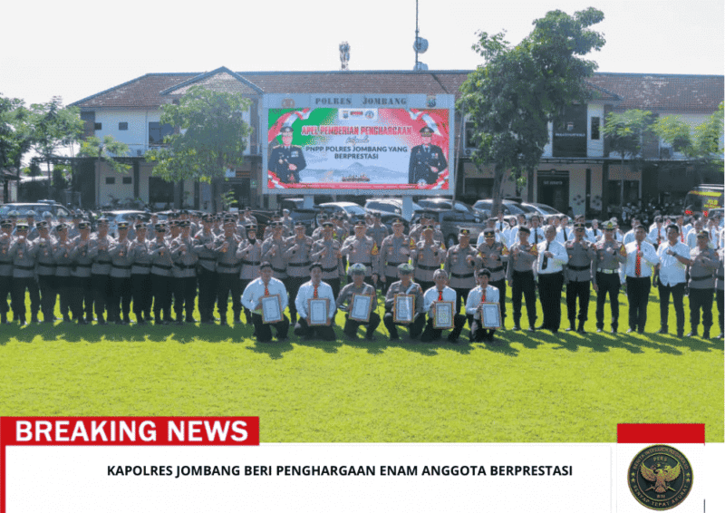 Beritaintelijennegara.id | Jombang — Kapolres Jombang AKBP Ardi Kurniawan, S.H., S.I.K., CPHR memberikan penghargaan kepada enam anggota dari Polres Jombang dan jajaran polsek yang dinilai berprestasi dalam pelaksanaan tugas. Penyerahan penghargaan tersebut berlangsung di Lapangan Polres Jombang, Senin (16/3/2026).