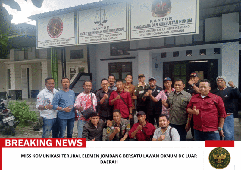 “Ini momentum kebangkitan solidaritas. Mari bersatu seluruh elemen masyarakat, ormas, LSM, media, bahkan LBH di Jombang. Jangan beri ruang bagi oknum DC dari luar daerah yang bertindak di luar koridor hukum,” tegasnya.