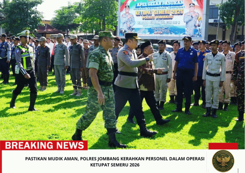 Beritaintelijennegara.id | JOMBANG – Polres Jombang menggelar Apel Gelar Pasukan Operasi Kepolisian Terpusat “Ketupat Semeru 2026” di Lapangan Mapolres Jombang, Kamis (12/3/2026) pagi.