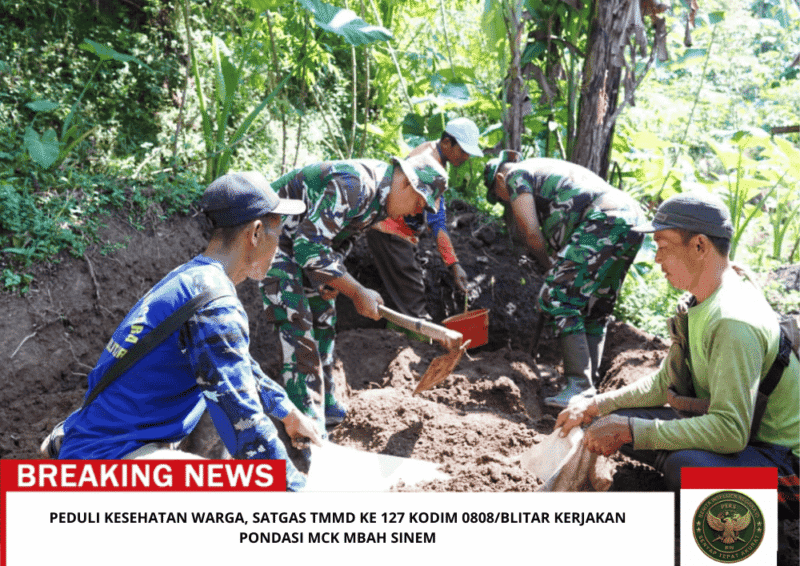 Beritaintelijennegara. id |Blitar – Guna meningkatkan kualitas hunian warga kurang mampu agar lebih sehat dan aman, program TNI Manunggal Membangun Desa (TMMD) Ke-127 Tahun 2026 Kodim 0808/Blitar terus melaksanakan kegiatan fisik yang menyentuh kebutuhan dasar masyarakat. Salah satunya dengan membantu progres pekerjaan dudukan pondasi MCK milik Mbah Sinem yang berlokasi di Dusun Barurejo Desa Krisik Kecamatan Gandusari Kabupaten Blitar, Jumat (13/2/2026).