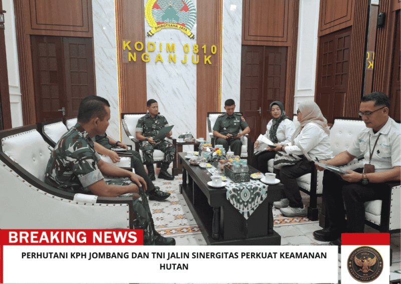 Beritaintelijennegara.id | JOMBANG, PERHUTANI (27/01/2026) — Perhutani Kesatuan Pemangkuan Hutan (KPH) Jombang memperkuat sinergi dengan Komando Distrik Militer (Kodim) 0810 Nganjuk, koordinasi dan silaturahmi dalam rangka menjaga kawasan hutan sekaligus dukungan terhadap Program Strategis Nasional Koperasi Desa Merah Putih (KDMP), Senin (26/01).