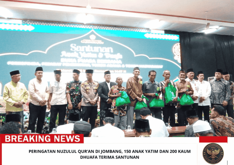 Beritaintelijennegara.id | JOMBANG – Momentum peringatan Nuzulul Qur’an di Kabupaten Jombang dimanfaatkan untuk menebar kepedulian sosial.