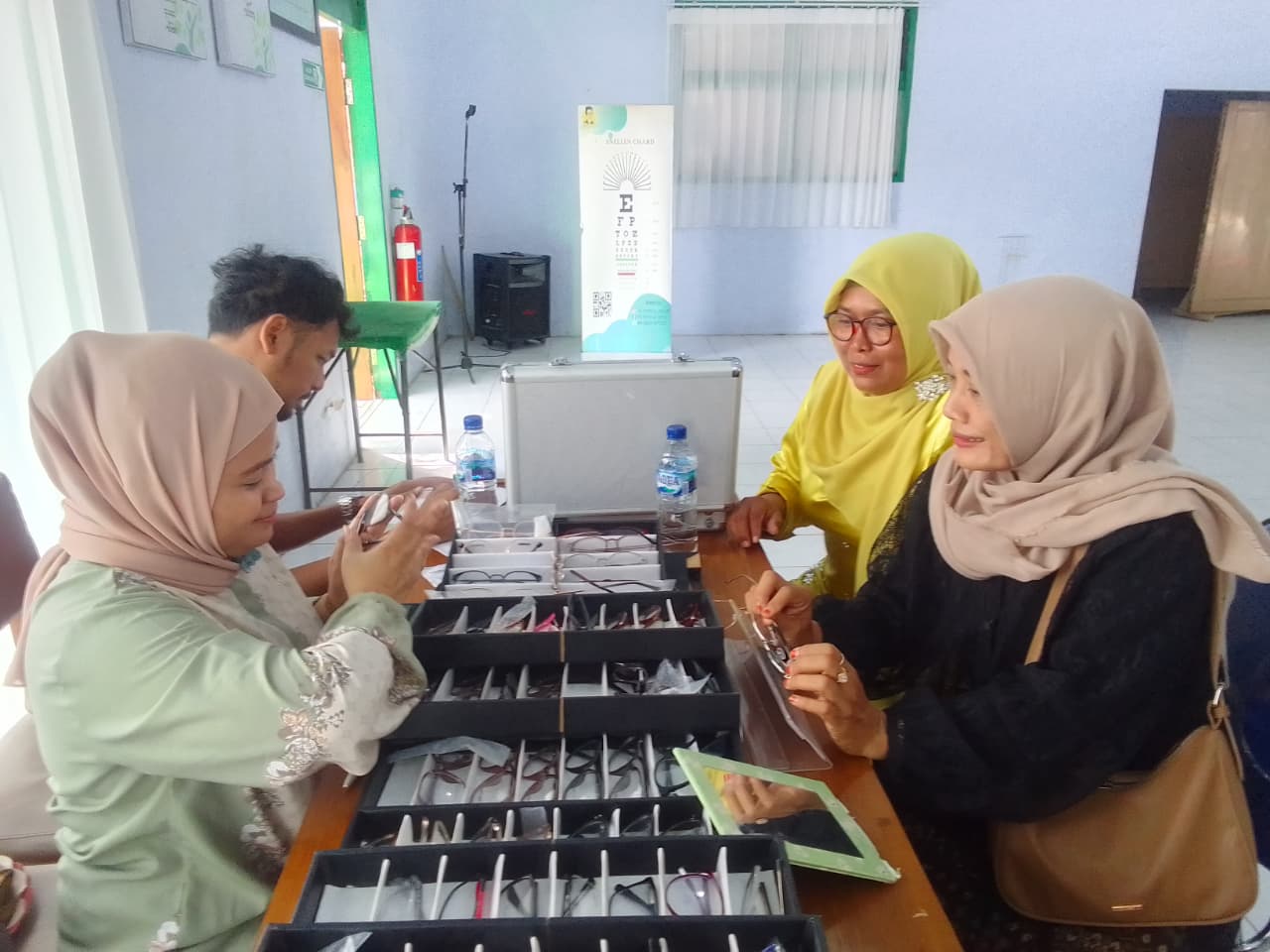 Tim Cek Mata dari Historia Optik, hadir yaitu Agustina Fidayati dan K. Suffi Optometrist, meliputi pemeriksaan Visus ,setraining kelainan miopia dan presbiopia