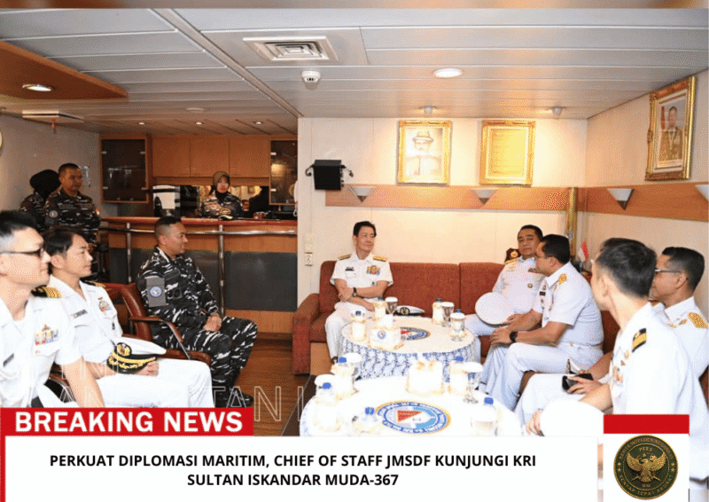 Beritaintelijennegara.id | Jakarta, 6 Februari 2026 — Hubungan bilateral antara TNI AL dan Japan Maritime Self-Defence Force (JMSDF) semakin kokoh. Di sela-sela kunjungan kerjanya di Indonesia, Chief of Staff JMSDF, Admiral Saito Akira, melaksanakan kunjungan kehormatan ke kapal perang Satkor Koarmada II yakni KRI Sultan Iskandar Muda-367 (KRI SIM-367) yang tengah bersandar di Dermaga Kolinlamil, Tanjung Priok, Kamis (05/01). KRI ini baru saja menuntaskan misi Maritime Task Force (MTF) TNI Konga XXVIII-P/UNIFIL di Lebanon.