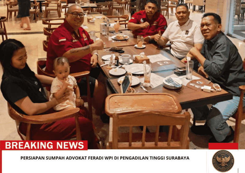 Beritaintelijennegara.id| Kamis 16 April 2026 — Hadir di Resto Hotel Elmi di Jalan Panglima Sudirman No.42-44, Embong Kaliasin, Kec. Genteng, Surabaya, Jawa Timur. Ketua Umum FERADI WPI Bapak Advokat Donny Andretti, S.H., S.Kom., M.Kom., C.MD., C.MDF., C.PFW., C.JKJ. beserta keluarga, Advokat FERADI WPI Sugeng Hariadi, S.H., C.MDF. beserta keluarga, Waketum DPP FERADI WPI BAPAK HENDRA SIHOMBING, C.MDF., C.PFW., C.JKJ. Dan Kadiv DPP Bapak Advokat Dwi Siswanto, S.H., C.PFW., C.MDF., C.JKJ.