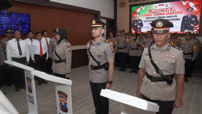 Beritaintelijennegara.id |Jombang – Polres Jombang menggelar upacara serah terima jabatan (sertijab) Wakapolres, Kabagops, Kasat Lantas serta pengukuhan jabatan Kasiwas, Kamis (15/1/2026) pagi. Kegiatan berlangsung di Ruang Jombang Command Center Mapolres Jombang.