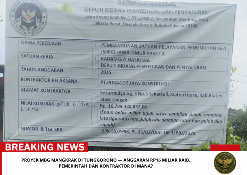 PROYEK MBG MANGKRAK DI TUNGGORONO — ANGGARAN Rp16 MILIAR RAIB, PEMERINTAH DAN KONTRAKTOR DI MANA?