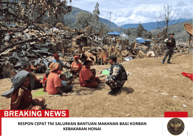 Beritaintelijennegara.id | Tolikara — Kepedulian terhadap warga yang tertimpa musibah kembali ditunjukkan Satgas Pamtas RI–PNG Kewilayahan Yonif 511/Dibyatara Yodha (DY). Melalui Pos KOUT Karubaga, prajurit TNI bergerak cepat menyalurkan bantuan makanan kepada keluarga korban kebakaran honai di Kampung Karubaga, Distrik Karubaga, Kabupaten Tolikara, Minggu (1/2/2026).