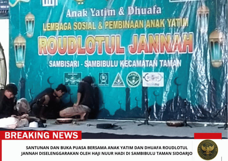 Beritaintelijennegara.id | Sambibulu – Semangat berbagi di bulan suci Ramadan kembali ditunjukkan oleh masyarakat Desa Sambibulu, Kecamatan Taman, Kabupaten Sidoarjo, Jawa Timur. Kegiatan santunan dan buka puasa bersama anak yatim serta kaum dhuafa diselenggarakan oleh Haji Nuur Hadi bersama yayasan Roudlotul Jannah di lingkungan RT 26 RW 05.