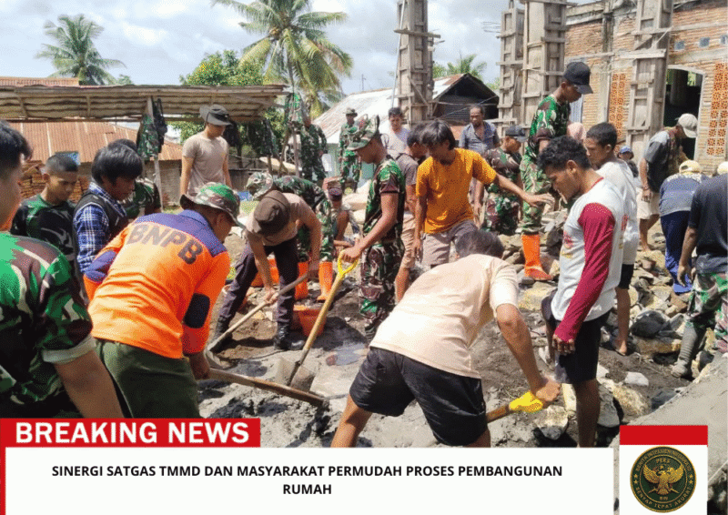 Beritaintelijennegara.id | Bima – Pekerjaan pembangunan Rumah Tidak Layak Huni (RTLH) oleh Satgas TNI Manunggal Membangun Desa (TMMD) Kodim 1608/Bima kini sudah mulai berjalan. Pekerjaan awal meliputi pembangunan pondasi dan konstruksi dasar rumah telah dimulai dengan semangat gotong royong, Kamis (12/2/2026)