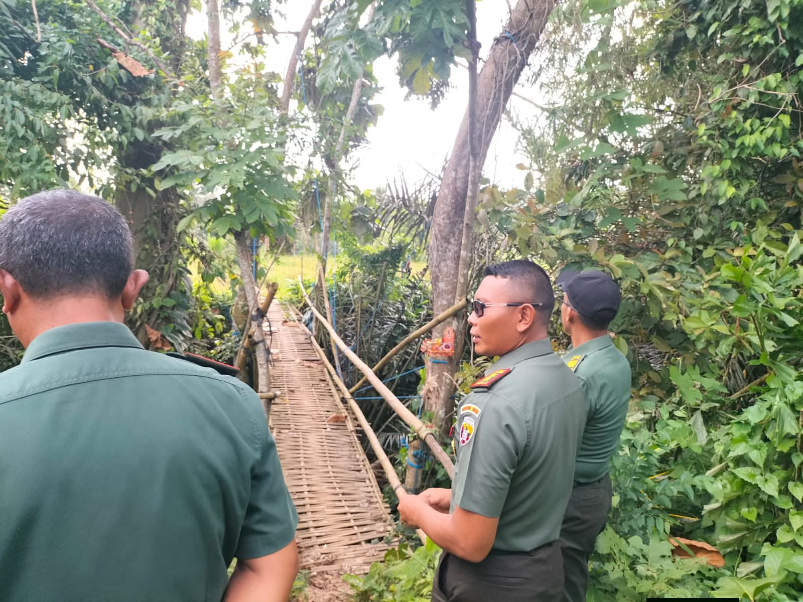 Disela peninjauannya, Dandim 1610/Klungkung Letkol Kav Sidik Pramono, S.Sos., M.M., M.Han menyampaikan bahwa sore ini kita tutun langsung ke wilayah Dusun Kaleran untuk meninjau jembatan sementara yang digunakan oleh masyarakat untuk beraktifitas sehari-hari.