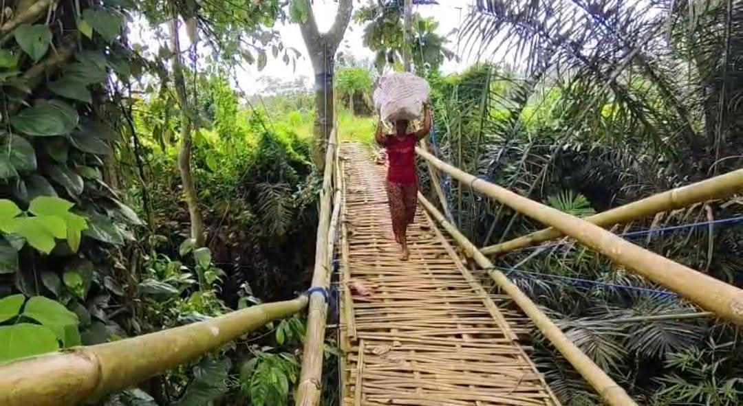 Jadi untuk membuka akses, kami dengan swadaya dan gotong royong membuat jembatan dari bambu agar aktivitas masyarakat kembali terbuka. Kami sadar jembatan ini memiliki resiko yang membahayakan, namun ini jadi jalan satu-satunya agar akses masyarakat khususnya untuk pertanian kembali terbuka.