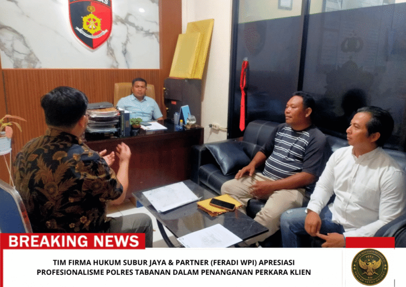 Tim Firma Hukum Subur Jaya & Partner (FERADI WPI) Apresiasi Profesionalisme Polres Tabanan dalam Penanganan Perkara Klien