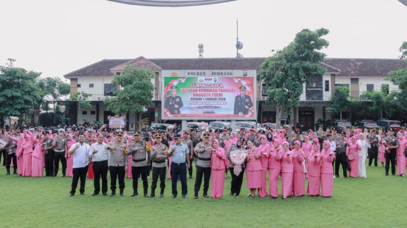 Upacara kenaikan pangkat dipimpin langsung oleh Kapolres Jombang, AKBP Ardi Kurniawan, S.H., S.I.K., CPHR, di Lapangan Mapolres Jombang, Jalan KH Wahid Hasyim, Rabu (31/12/2025). Dalam upacara tersebut, sebanyak 6 personel naik pangkat dari Iptu menjadi AKP, 4 personel dari Ipda menjadi Iptu, serta 3 personel menerima kenaikan pangkat pengabdian dari Aiptu menjadi Ipda.